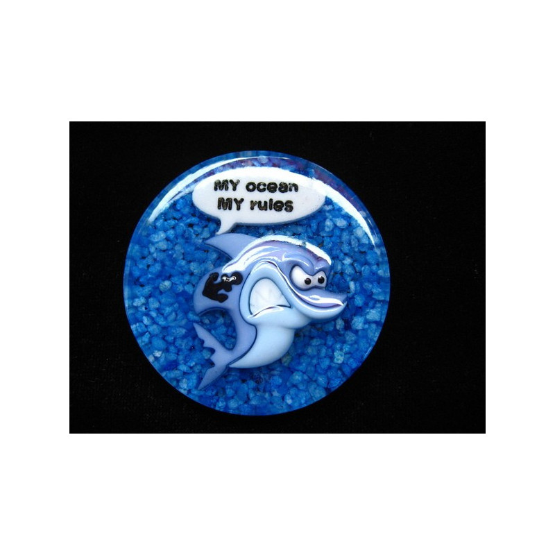 Grand Magnet fantaisie Requin sur fond bleu en résine