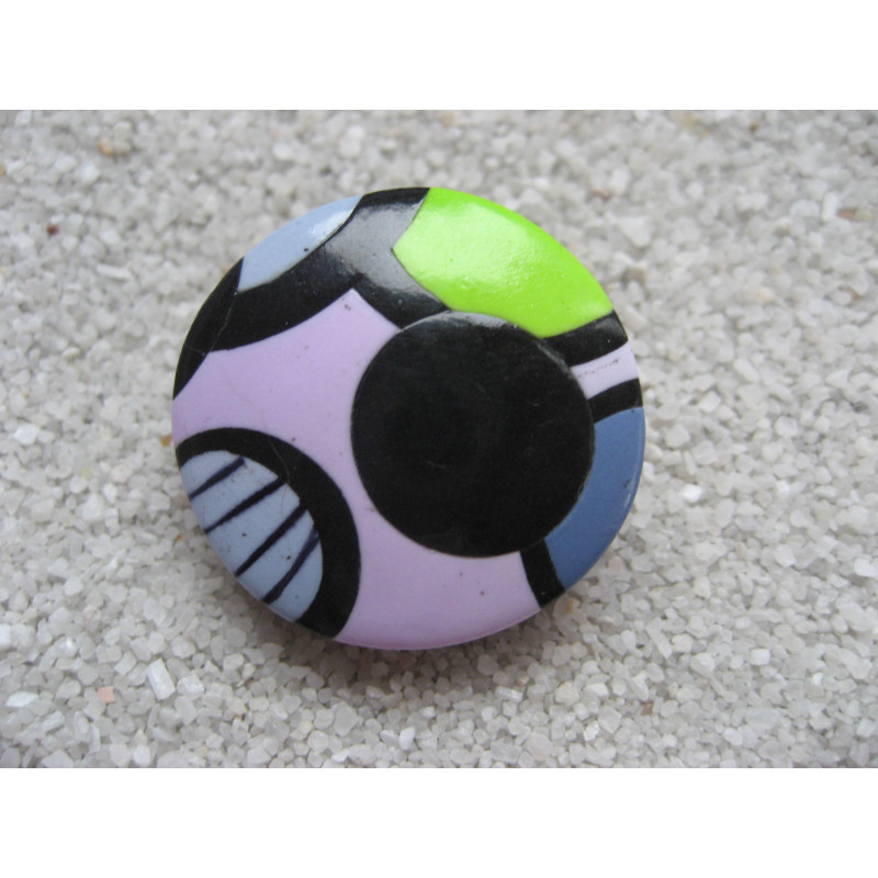 BAGUE cabochon géométrique vert et bleu en Fimo