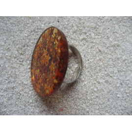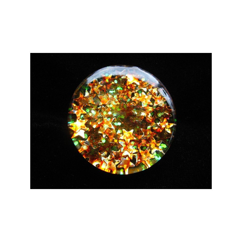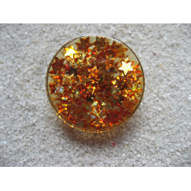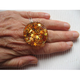Grande bague étoiles oranges sur fond transparent en résine