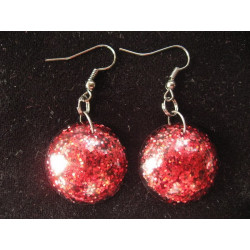 • BAGUE petit cabochon fantaisie, paillettes rouges en résine