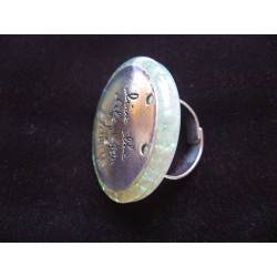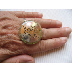 Grande bague Live the life you love sur fond beige nacré en résine