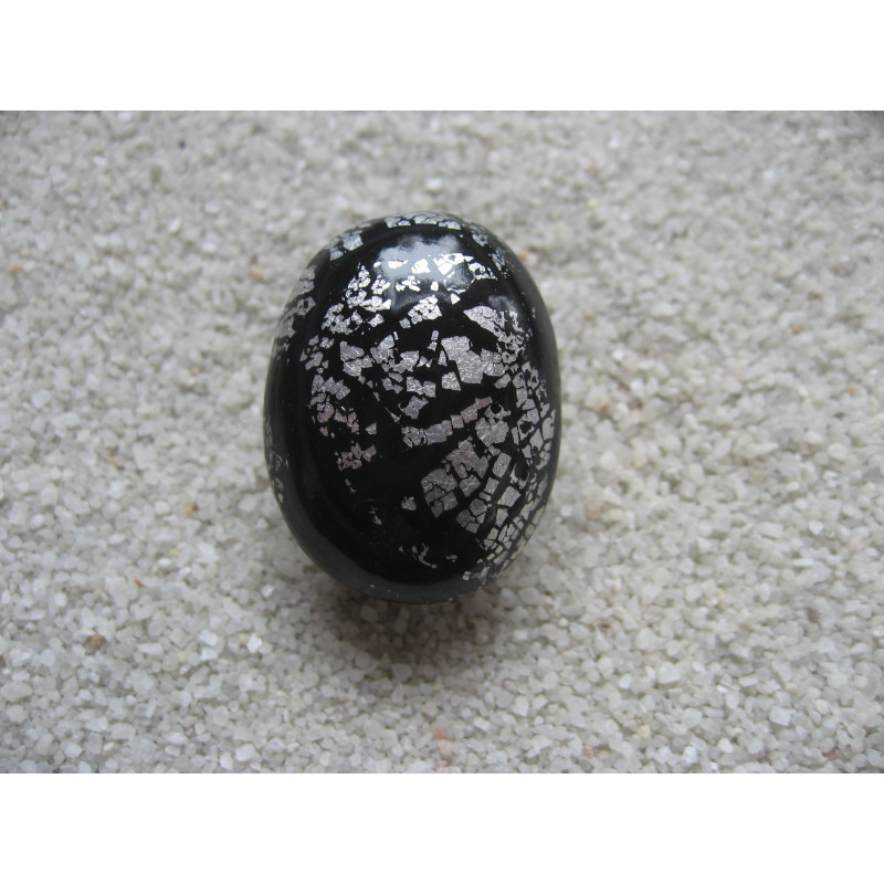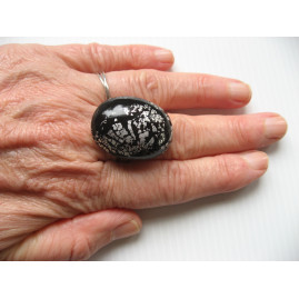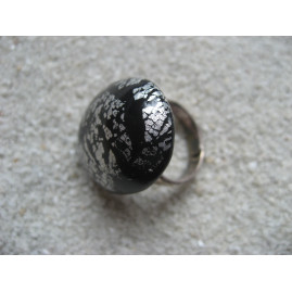 BAGUE ovale cabochon argenté sur fond noir en fimo