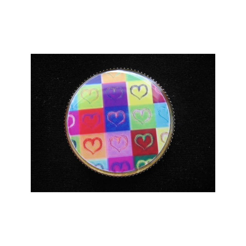 BROCHE fantaisie coeurs multicolores sertie en résine