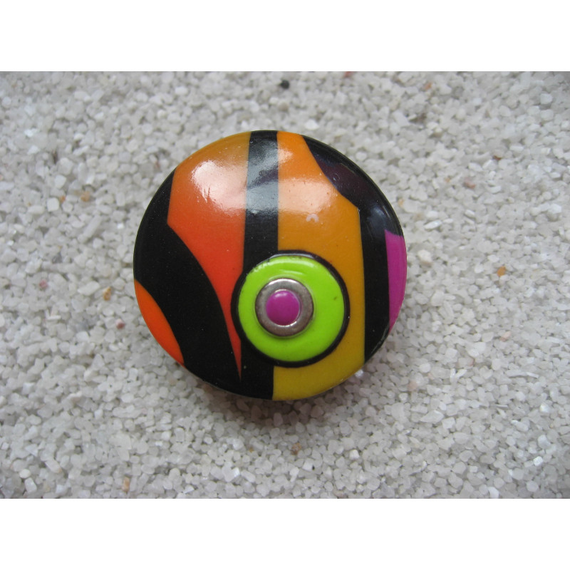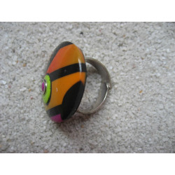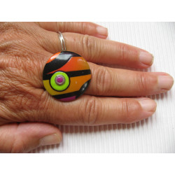 Grande bague cabochon géométrique noir et multicolore en fimo