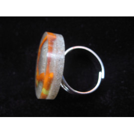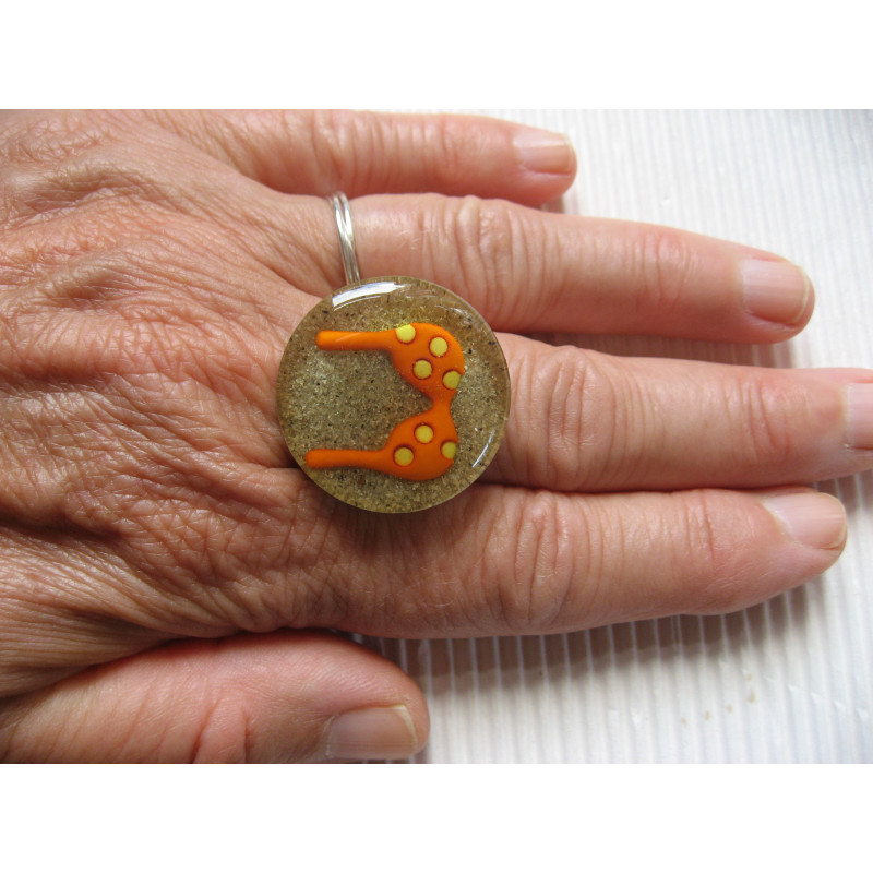 BAGUE estivale Haut de Bikini orange sur fond de sable en résine
