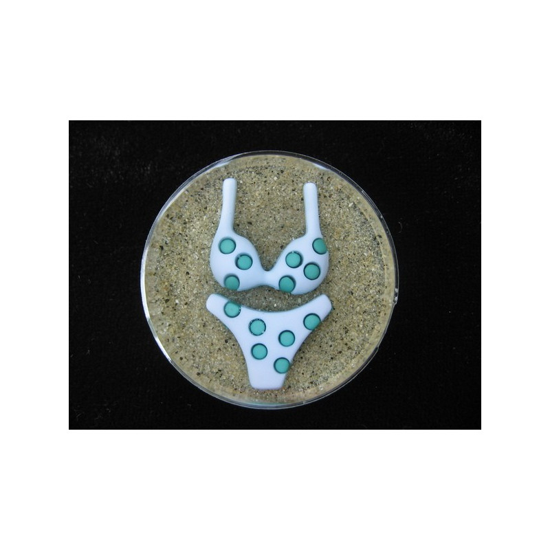Grande bague Bikini bleu clair à pois sur fond de sable en résine